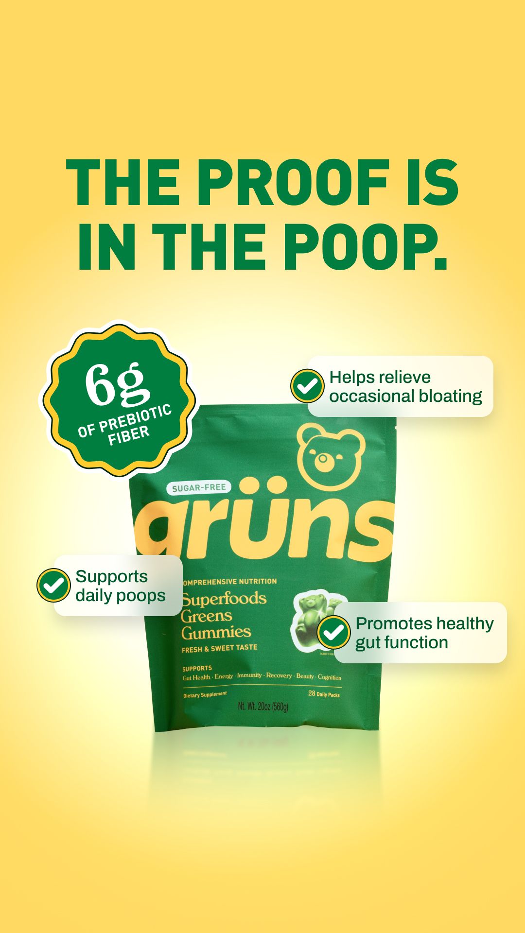 It uses humor and directness to grab attention, then quickly shifts into clear, functional benefits. By stacking multiple outcomes, the ad reassures the viewer that the product is effective across different gut health needs. It’s equal parts scroll-stopping and convincing.